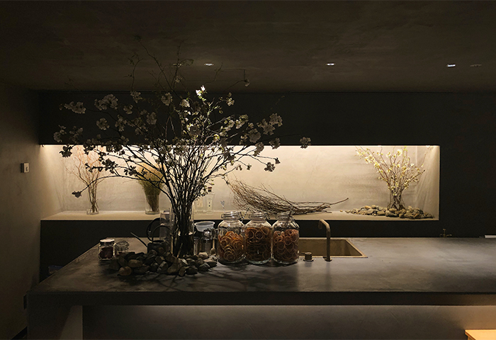 東京にあるフロリレージュ(2011〜2018年在籍時)にて、店内植物装飾や飲料コンテンツの開発を担当。コース料理に寄り添う飲料ペアリングコースの開発。店内の植物装飾は、枝ものを中心に季節感を大切にしながらも、店舗で提供する飲料ペアリングコースのアプローチに合わせて定期的に変更しながら生け込みを行いました。