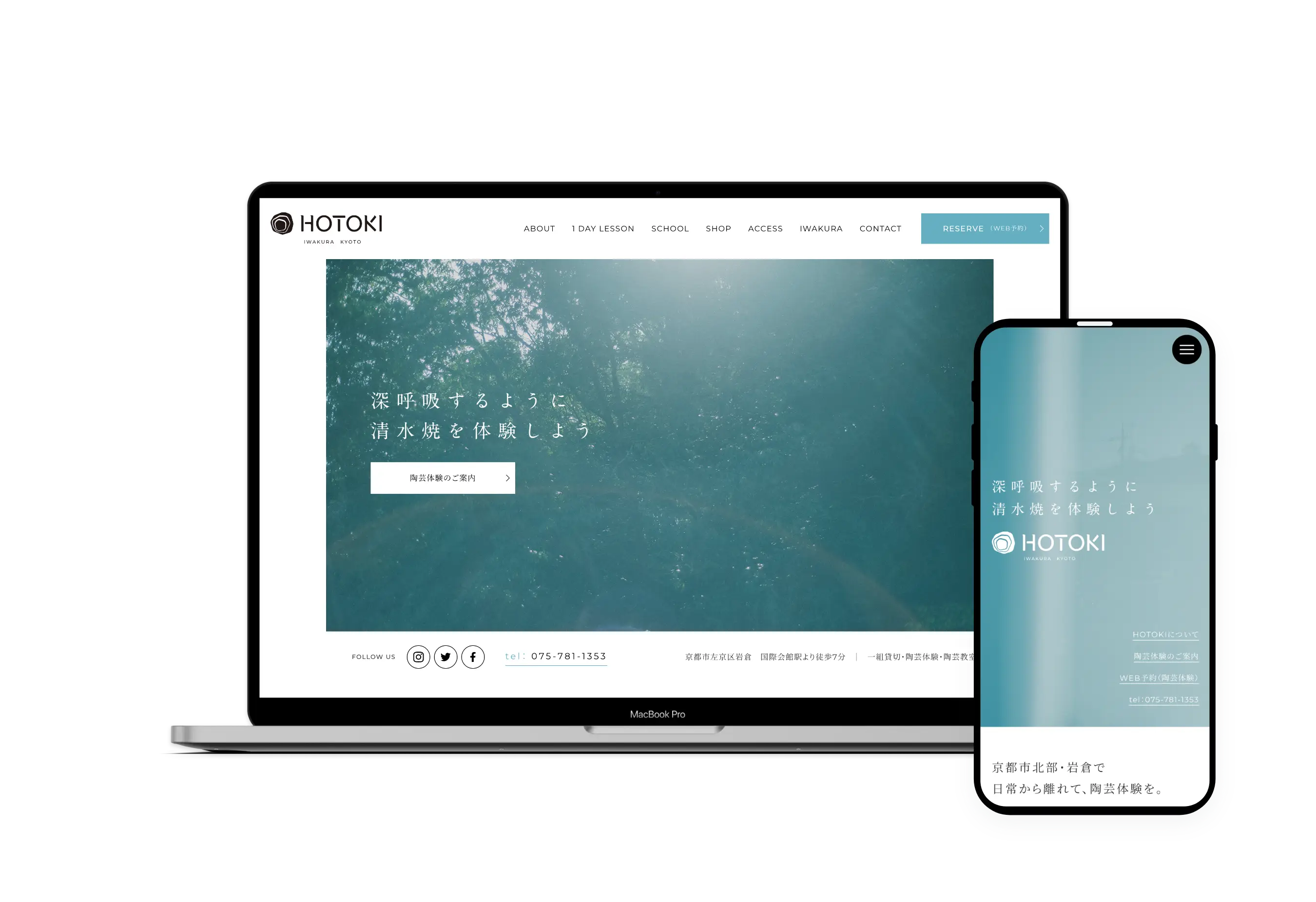 京都市左京区岩倉にある陶芸スタジオHOTOKI様のサイトリニューアルに際してデザイン・構築を行いました。京都市の北部・岩倉という豊かな自然に囲まれた場所で陶芸を体験する、その心地良い空気感や情景が伝わるようなサイト作りを指針にデザイン制作を行いました。