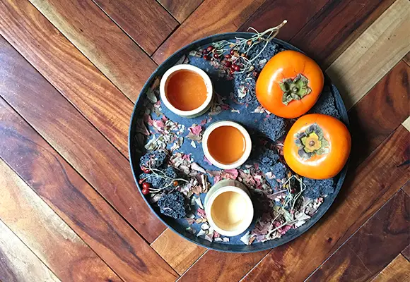 コース料理に寄り添う飲料ペアリングコースの開発。コンセプトは、HERBARIUM ハーバリウム(植物標本)×FLORILEGE フロリレージュ(詞華集)=FLORILEGIUM フロリレジウム(花譜・コレクション)。店名の意味合いでもある美しい詩の選集のように、テーマやストーリー性を組み込みながら、料理のように飲料を仕立て、五感を通して味わうコースを制作しました。