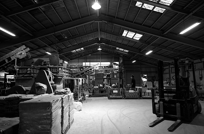 また、陶土製造の工程を紹介するページでは、製造現場の写真を中心としたフォトギャラリーを構成。現場の空気感や、ものづくりの真摯な雰囲気が伝わるようにページ構成や余白の使い方、トーンの統一感にも配慮しています。